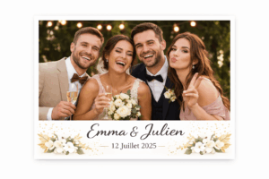 Un template photobooth est le design graphique qui habille vos photos imprimées et numériques lors de votre événement.